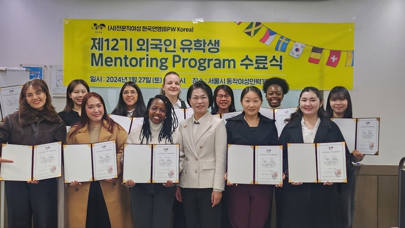 (사)BPW 한국연맹(회장 최예담, 이하 전문직여성한국연맹)은 지난 1월 27일(토) 오후 2시, 서울시 동작여성인력개발센터 3층 제2강의실에서 "제12기 정부초청(Global Korea Scholarship) 외국인 유학생 Mentoring Program" 수료식을 가졌다.